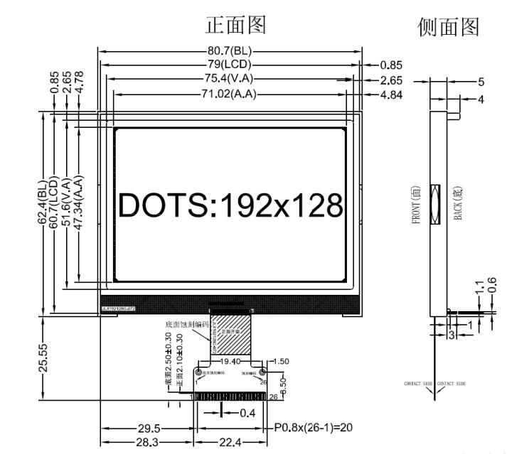 2. IC 采用矽创公司ST75256,功能强大,稳定性好