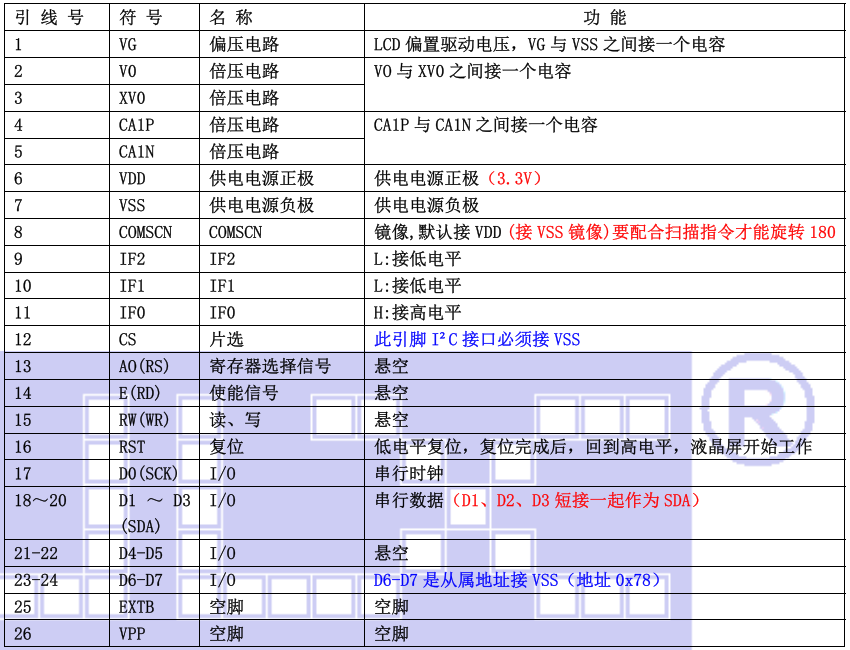 (2)四线串行时接口引脚功能
