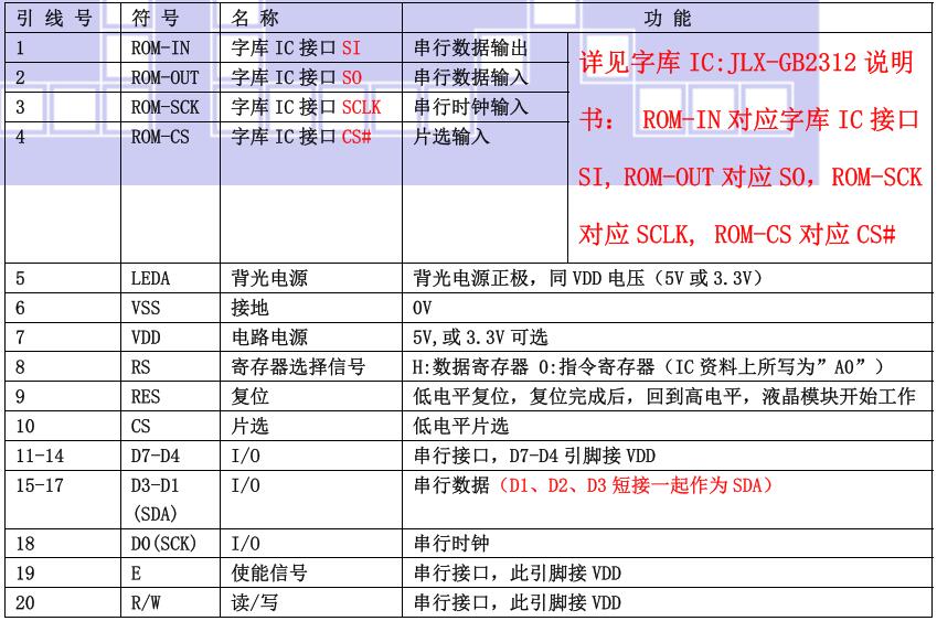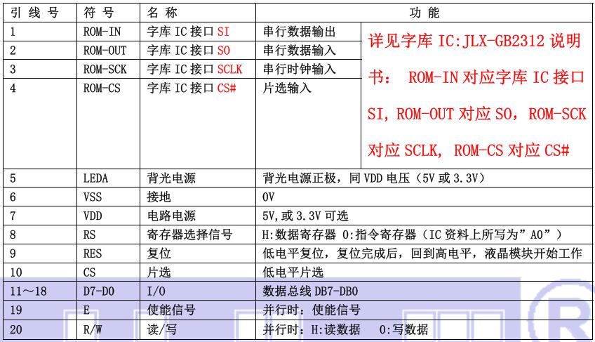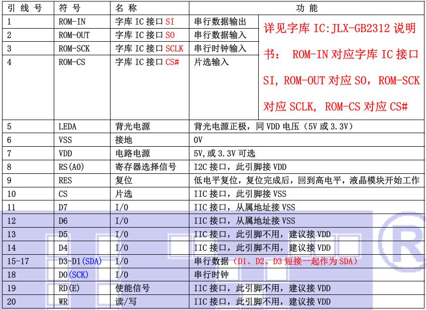 (1)并行时接口引脚功能
