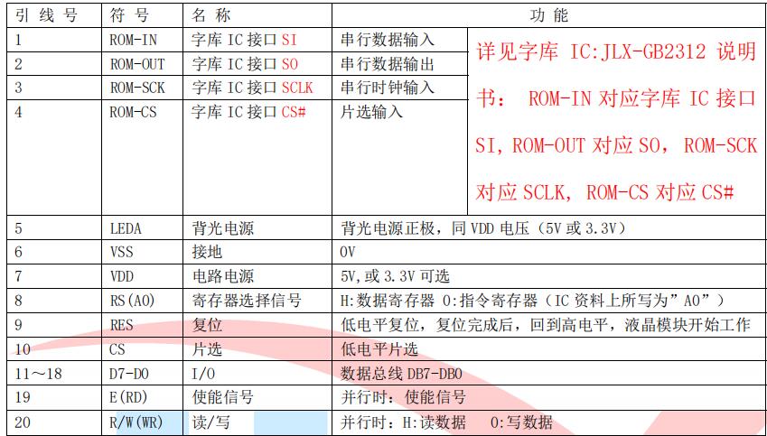 (1)并行时接口引脚功能