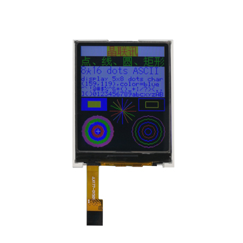 1.结构轻、薄、带背光、插接式FPC。 2. IC 采用ST7735S,功能强大,稳定性好 3. 指令功能强:例如可以用指令控制显示内容顺时针旋转90、逆时针旋转90°或倒立竖放。 4.接口简单方便:采用4_SPI 串口。 5. 工作温度宽:-20℃ - 70℃; 6. 储存温度宽:-30℃ - 80℃;